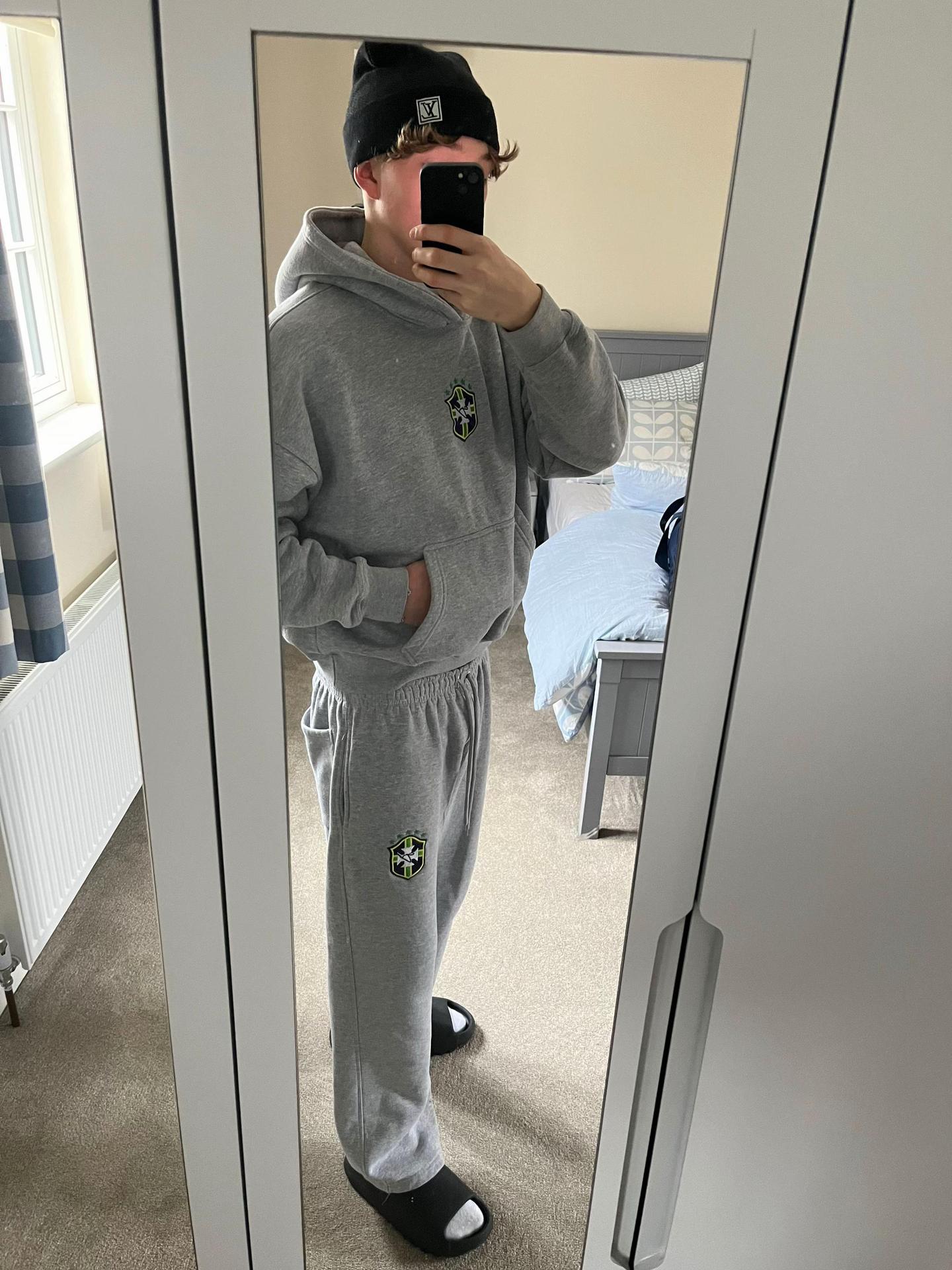 Colors Available: Black, Gray (embroidered sweatshirt and trousers).